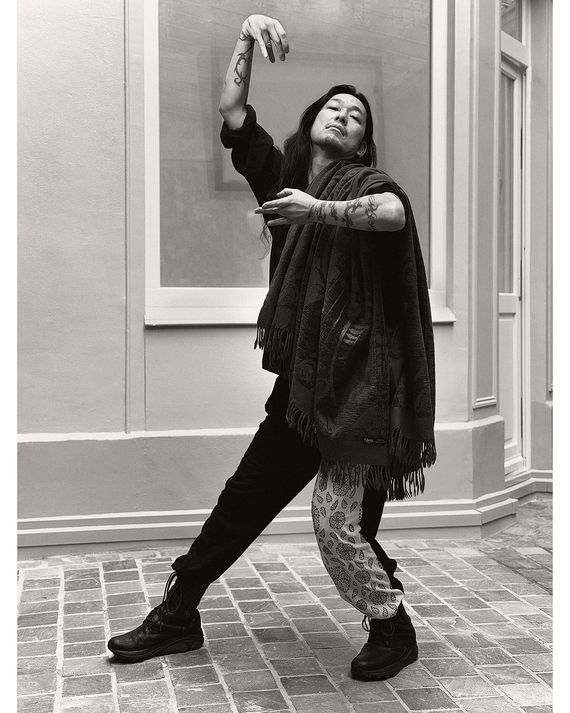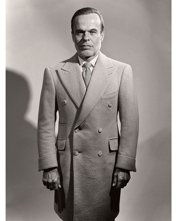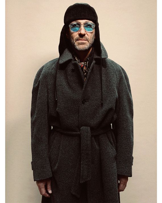 I am at a point in my life where I know who I am and what I want people to see. I’m always in a black, blue, or gray suit, usually double-breasted. I don’t want crazy things. When I see these peacocks everywhere layering, adding things, showing that they have a lot of clothes, I think, Ugh. Style is about minimalism, about taking things off. With fewer options, I can obsess over the little details. The kinds of blues or grays. I can play with width and shape. For instance, this is the third version of this suit. I started with a Hedi Slimane cut around 2012 — really thin sleeves, fitted torso, short jacket. Then, five years later, I said, Okay, I want something else. I made the torso straighter, the trousers high-waisted. And then, several years later, I changed it again to what I’m wearing now: a slightly flared pant, a large lapel, a really long jacket. I always wear boots. A suit can look corporate. But add a pair of Chelsea boots and suddenly you’re Bryan Ferry.