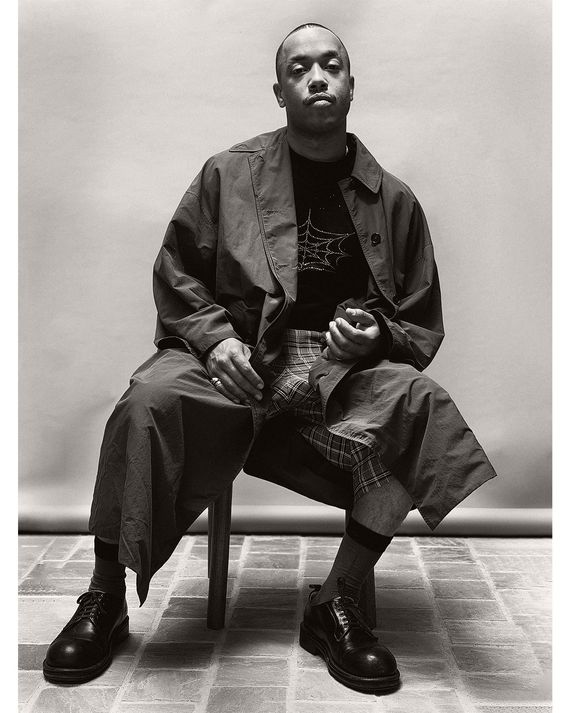 Wearing: Secondhand Comme des Garçons and COS shirts, Carhartt work trousers, and sport jacket by Alessandro Michele for Gucci (a gift from the designer).